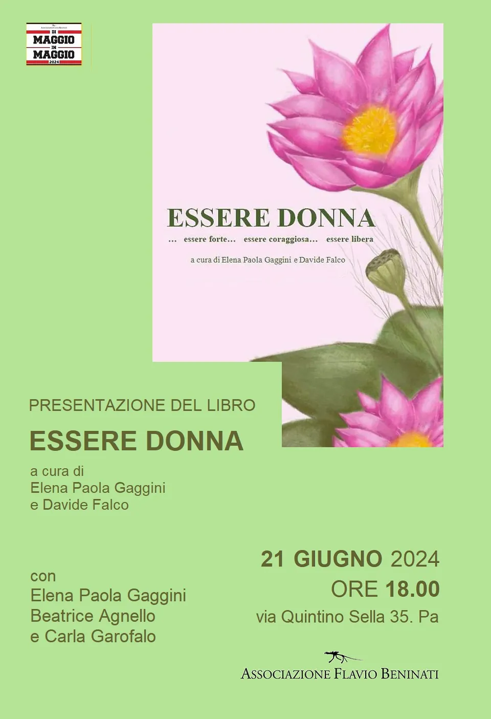 Rassegna letteraria DI MAGGIO IN MAGGIO 2024 Dialogheranno con l'autrice: Beatrice Agnello e Carla Garofalo